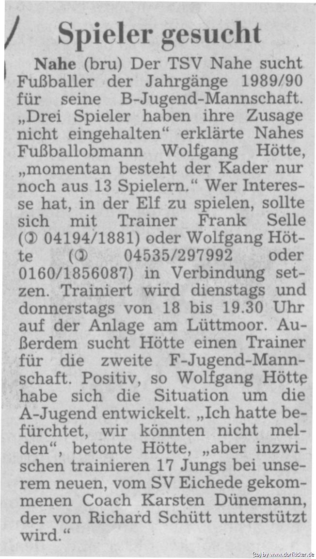 Leider blieben auch die Zeitungsinserate ohne Erfolg! (Segeberger Zeitung vom 10.08.2005)